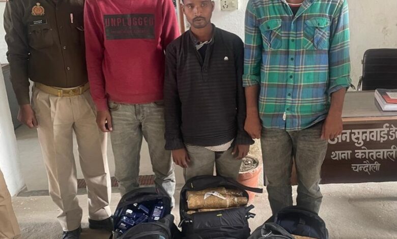 अवैध शराब तस्करी पर नकेल कसने के लिए चंदौली पुलिस द्वारा चलाई जा रही विशेष मुहिम के तहत थाना चंदौली पुलिस टीम ने तीन तस्करों को गिरफ्तार कर 32 लीटर अवैध अंग्रेजी शराब बरामद की है।