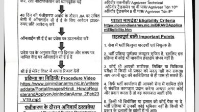 13 फरवरी से 1 अप्रैल तक सेना भर्ती के लिए ऑनलाइन पंजीकरण शुरू
